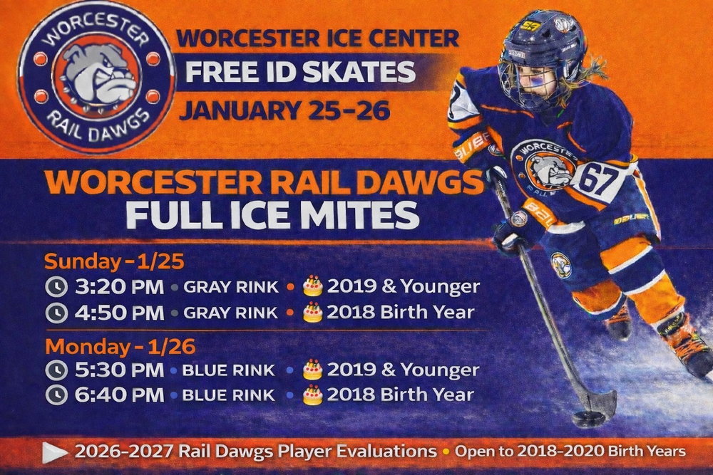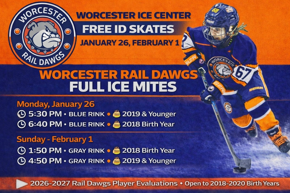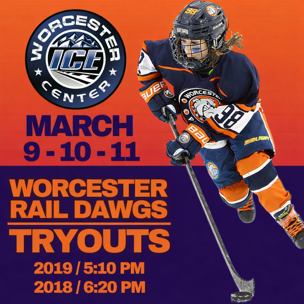 Tryouts and evaluations for the Junior Railers Hockey Club begin March 9 at Worcester Ice Center, and registration is now open.