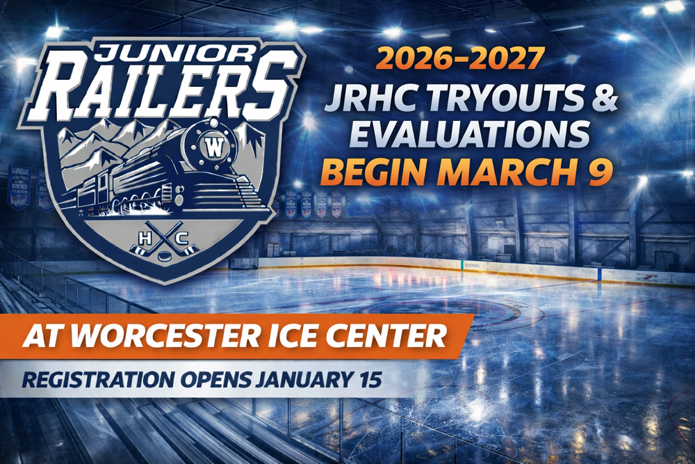 Tryouts and Evaluations for the Junior Railers Hockey Club will begin on March 9 at Worcester Ice Center.