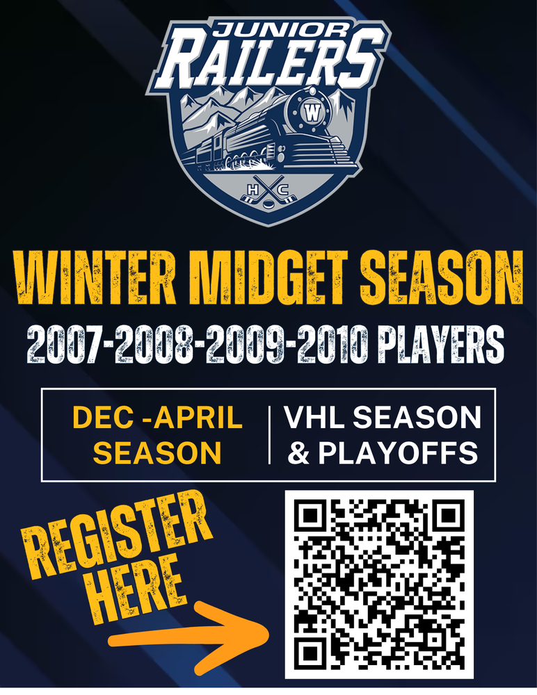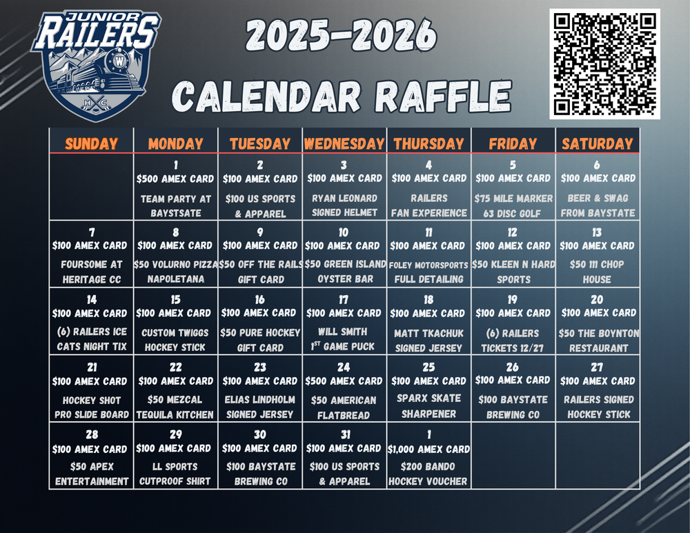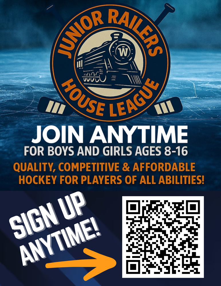 Every Junior Railers, White Hawks, and Rail Dawgs player, coach, and volunteer will receive ONE complimentary ticket to the game. Additional tickets for family and friends can be purchased HERE or by using the QR Code.