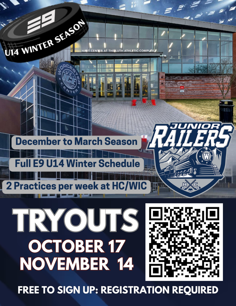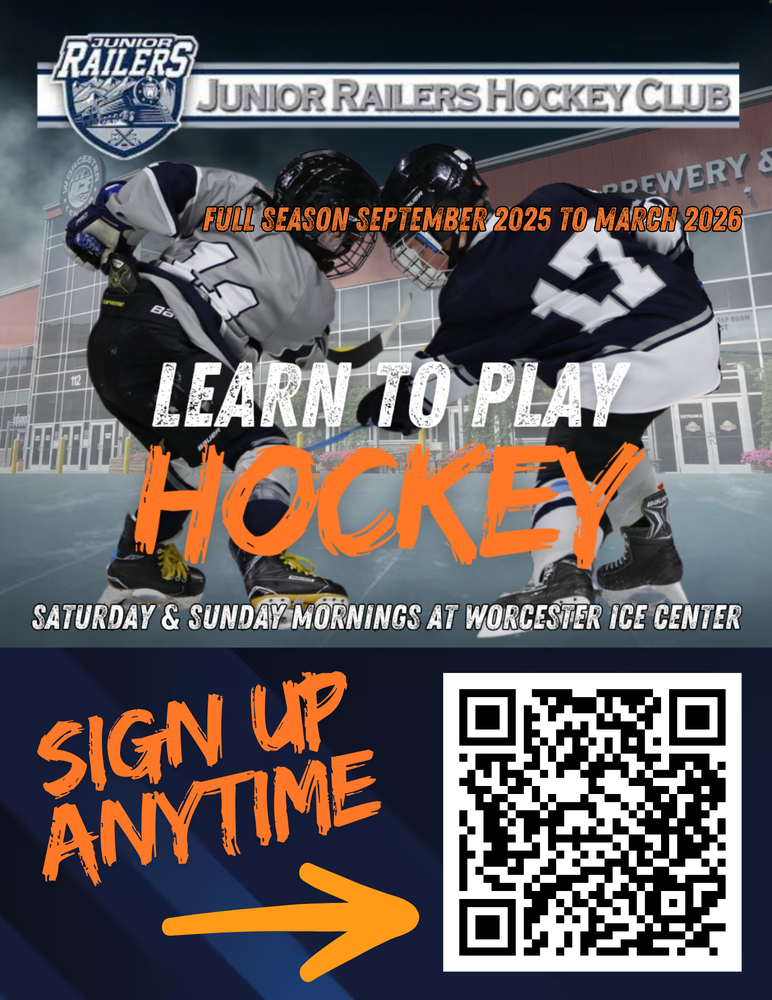 The Junior Railers Full Season Learn to Play Program will have 50 weekend sessions at Worcester Ice Center during the 2025-2026 season!